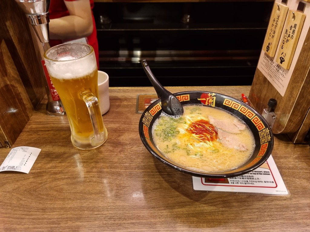 Después de una larga espera, comimos ramen en Ichiran, uno de mis favoritos del viaje. Se supone que la receta es un caldo a base de cerdo, con filetes de cerdo, cebolleta y la salsa picante secreta.