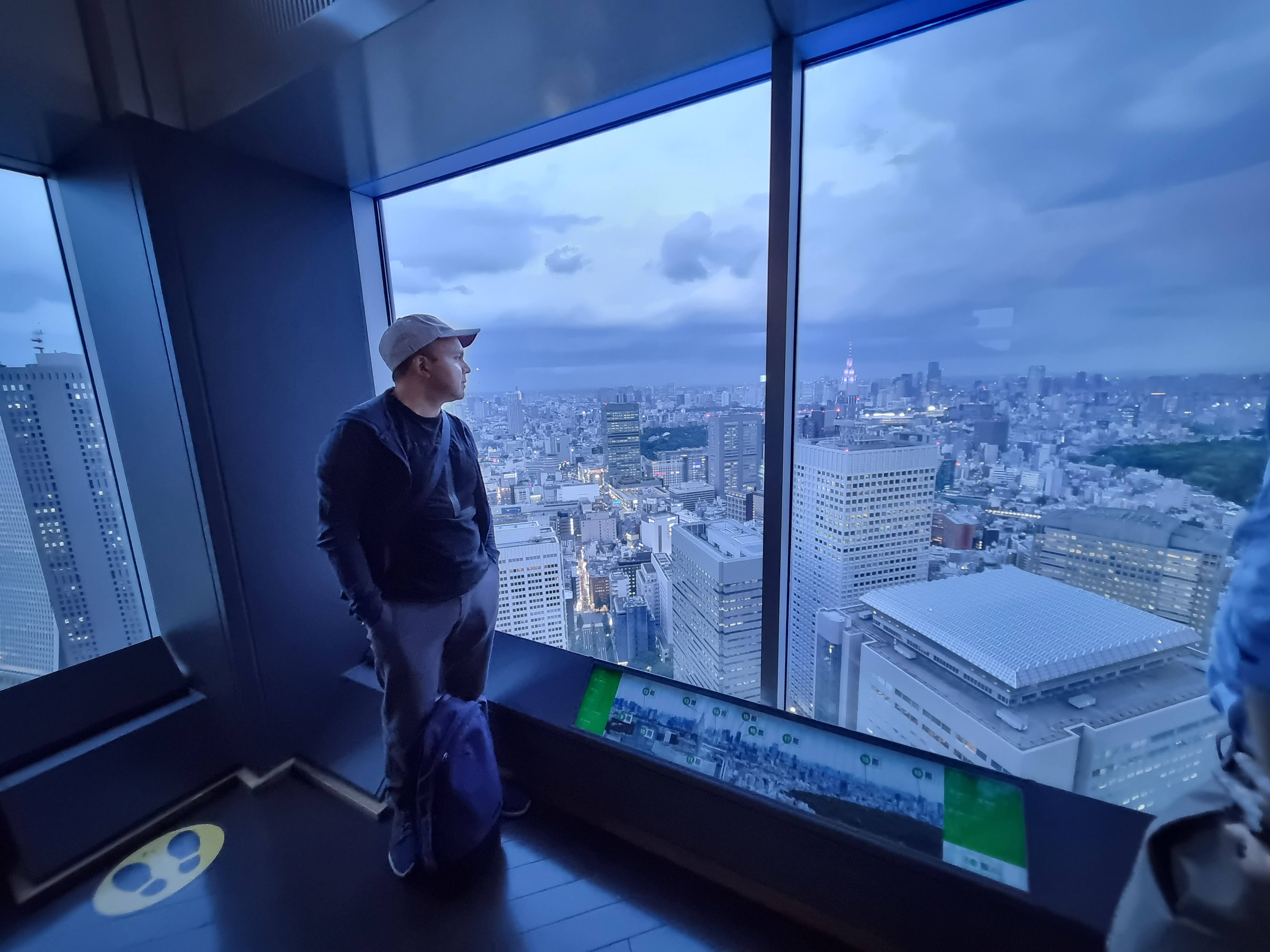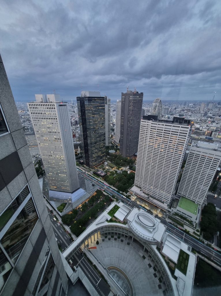 Después de unos 20 minutos de recorrido desde Omoide Yokochō, llegamos al edificio del Ayuntamiento de Tokio donde hay dos torres a las que se puede acceder gratuitamente al piso 45 y contemplar toda la ciudad.