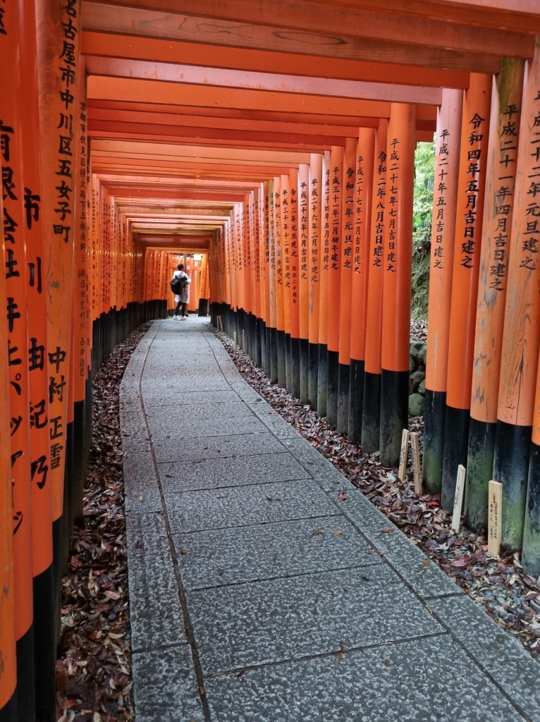 Este santuario sintoísta es también un clásico instagrameable por sus más de 32,000 pequeños torii. Enrique, Lalo y yo, somos de los pocos del grupo que sacrificamos la comida por ascender hasta la cima. Al llegar, obtenemos una vista panorámica de la ciudad de Kioto.