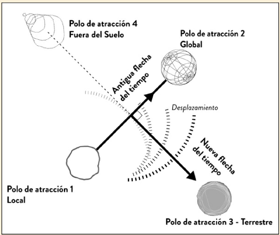 Por el 2015 se evidenció lo que ya muchos sospechaban: el destino resultaba imposible porque era una fantasía. Nuestro planeta no tiene las capacidades para dar a todos una vida de ricos. Una buena parte de la tripulación decide que debemos volver al punto del que partimos (Polo de atracción Local) pero descubre asombrada que ese origen tampoco ya no existe. Pensemos un poco en por qué ocurre esto.