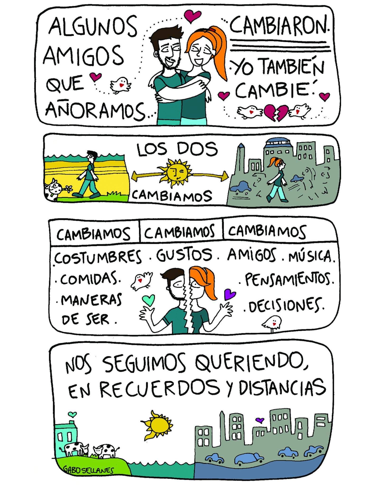 Me gustó esta imagen porque me recuerda que todos cambiamos. No solo nos movemos geográficamente, también somos personas diferentes con el paso del tiempo. Y así, las amistades se enfrían con el distanciamiento o finalmente se mueren. Aunque también pueden volver a revivir.