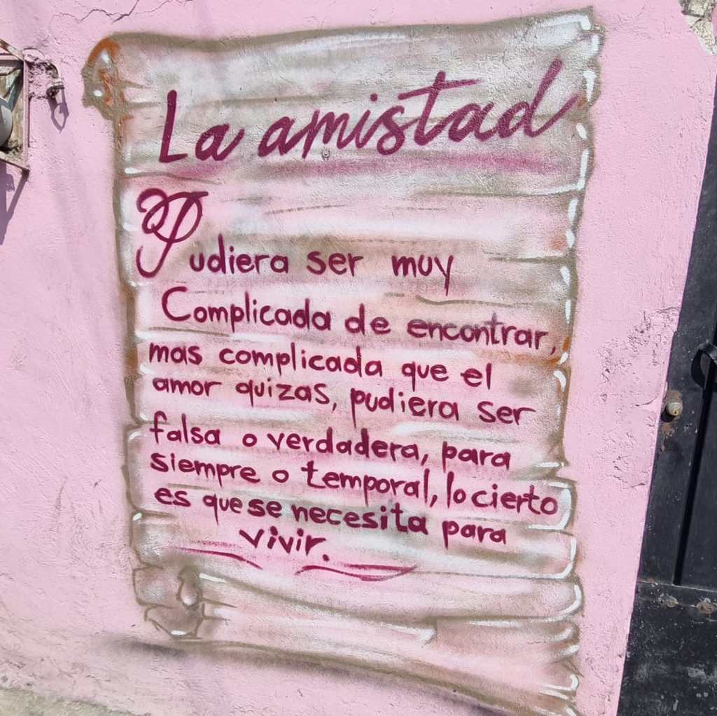 “No sé porqué nos la pasamos hablando mucho del amor y poquito de la amistad, la amistad es más libre, tiene menos reglas y muchas veces es lo único que nos hace sentir que no estamos solos en este pinche mundo”